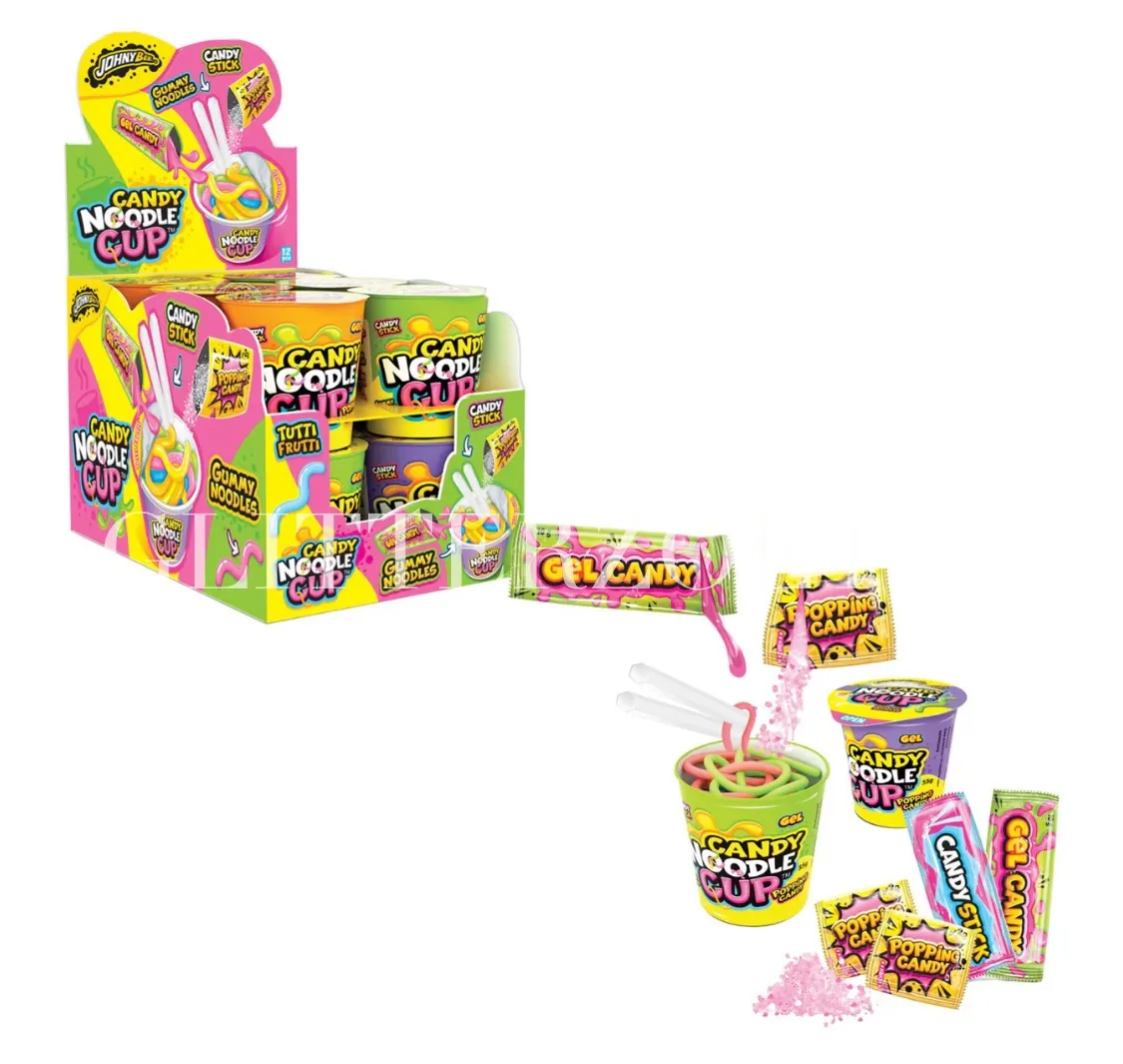 Noodle cup met zachte snoepjes super leuke traktatie.