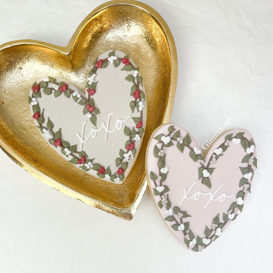 Groot hart 11a12 cm met leuke blaadjes en mini hartjes en de tekst XOXO. geseald verpakt met strikken.
