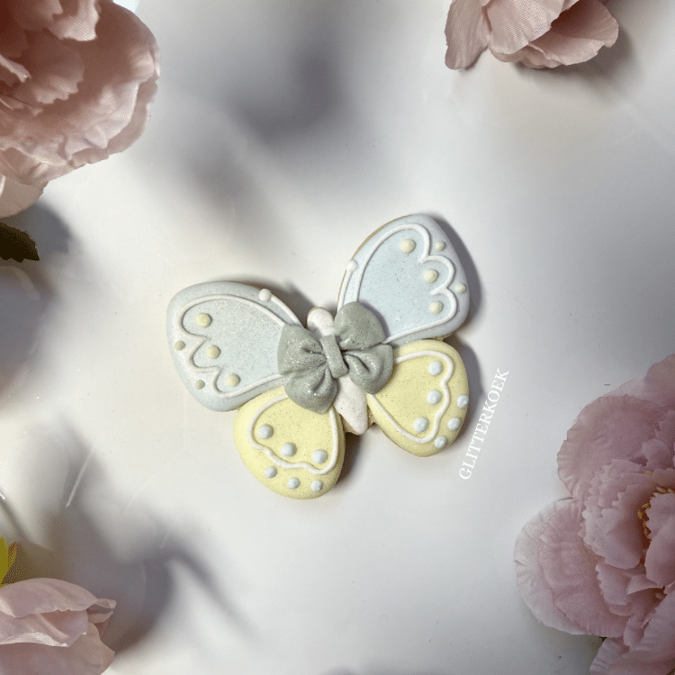 glittervlinder in de kleur blauwgeel. geseald met strikjes verpakt.