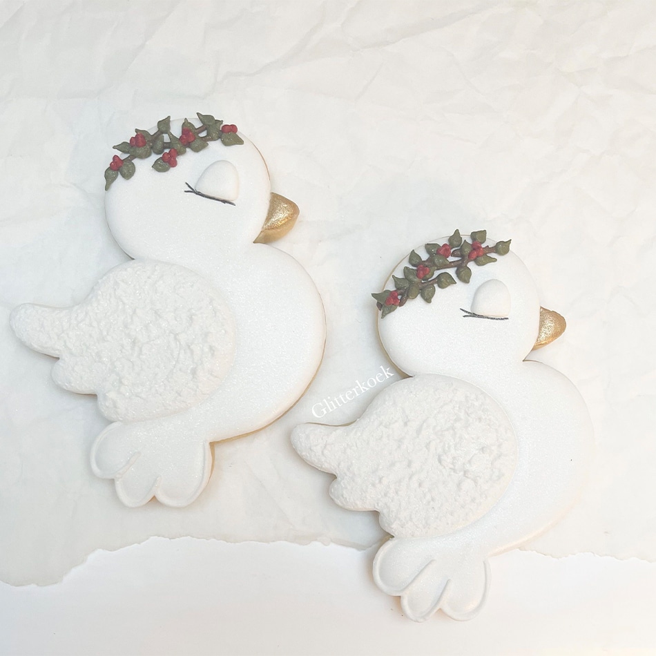 super schattig duifje met blaadjes krans en goud snaveltje. geseald met strik ingepakt.