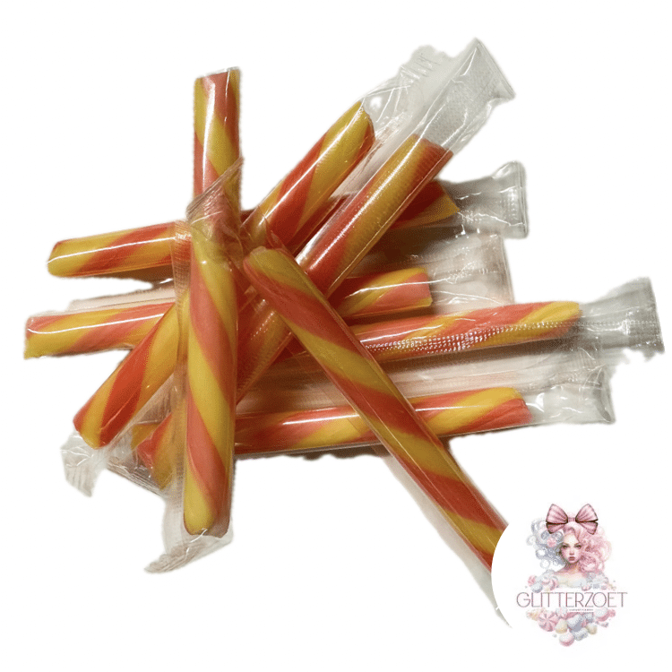 Zuurstok in de smaak banaan aardbei, ook een leuke traktatie voor kinderfeestjes