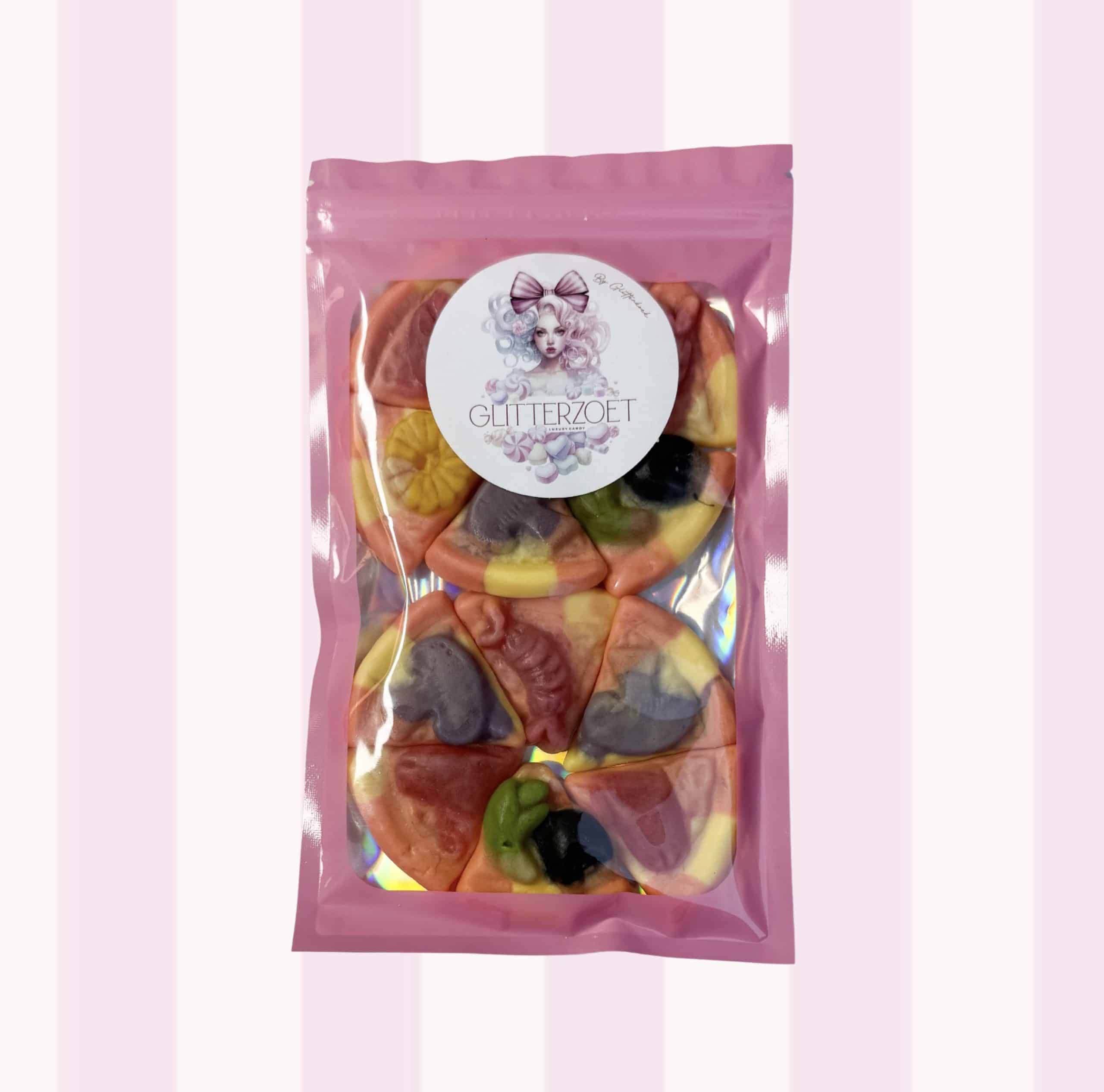 de kies en mix artikelen worden laag voor laag gevuld , als u het snoep gemixt wilt kunt u dit aangeven bij de opmerkingen