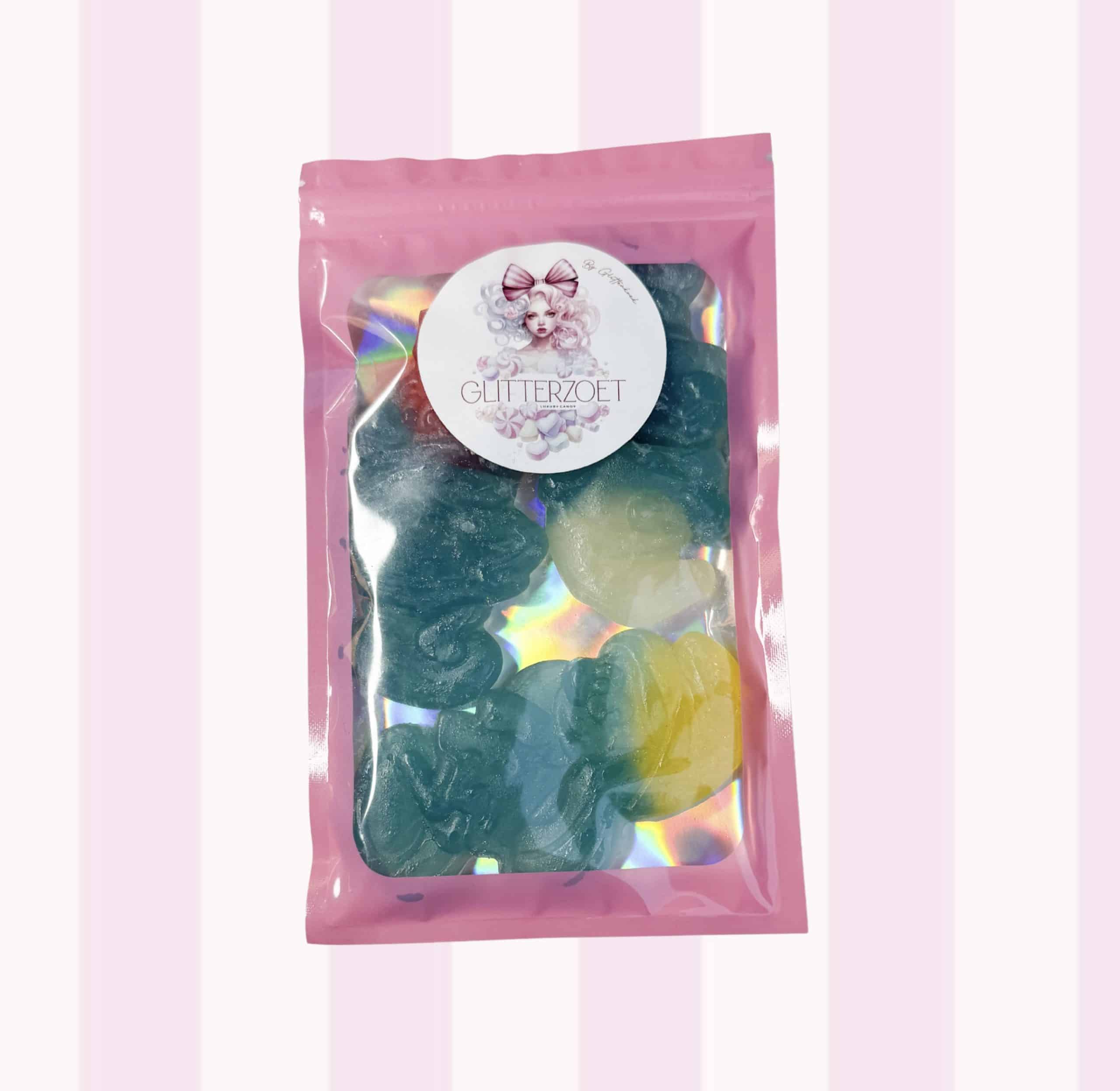 elk snoepje heeft een eigen gewicht en kan het minimaal variëren in de aangegeven gewicht van het artikel. Speksnoep is altijd minder in gewicht dan snoep, ook als u de zelfde formaat verpakking besteld.